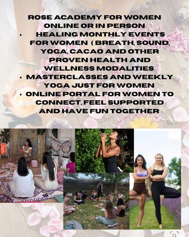 The Rose Healing Academy for Women (Monthly In-Person events, weekly classes and masterclasses) a wellness, health and personal development hub for women.